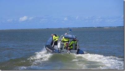 We left Norderney just ahead of high tide at 0500.  A flotilla of 8 boats followed and then dispersed during the day.  The 13 hour trip was very rocky especially through the islands.  But we both took seasickness pills and managed pretty well.